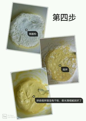 这里先把泡打粉倒进面粉里拌匀再把面粉倒到蛋糊上。