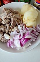 放入洋葱丝和牛腩翻炒至洋葱丝变透明