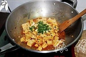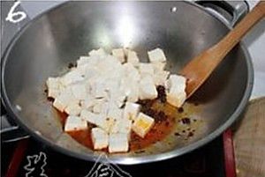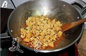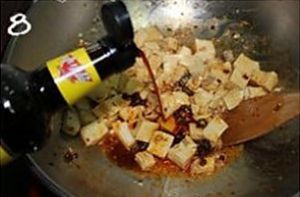 淋入适量酱油,翻拌均匀(翻拌是不要太大力,否则豆腐会很容易碎掉的,直接晃动几下锅子也可以了)