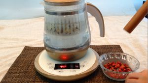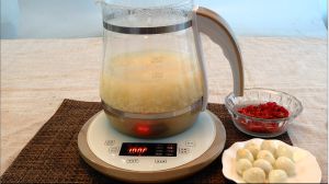 另外使用”药膳“功能,1碗酒酿煮大约5分钟,放入水量可以根据个人口味调整,甚至不放水也是可以的.