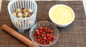 鹌鹑蛋冷水下壶,食用”煮蛋“功能煮沸后再煮3分钟关火。小碗中加入冷水,把煮熟的鹌鹑蛋捞入剥去蛋壳备用。顺带将玫瑰花捣碎备用。