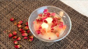 酒酿煮好后,一同放入鹌鹑蛋煮5分钟左右。关火添加玫瑰花,稍凉搅拌食用。