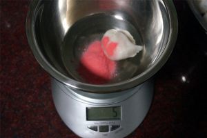 取50克冰皮面团,加入5克草莓粉,揉合。
