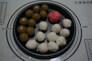 馅料分成25克一份,冰皮30克一份,各分成10份。