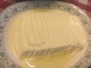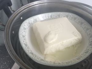 煮卤汁时 开始准备豆腐 一般三口之家要两块这样的豆腐 上锅蒸 见盘李出现大量水时就可以关火了