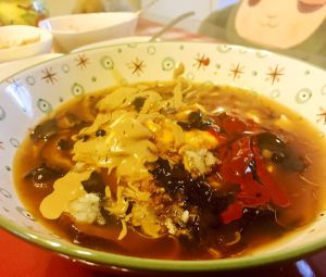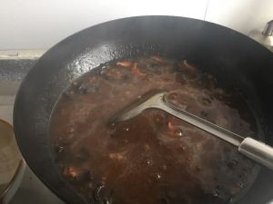 先八角 葱末炝锅 炒木耳香菇 然后放入少许老抽 还有红中酱油 翻炒几下放入熬好的鸡架汤 没有高汤就直接放水吧 根据家里的人数添水 3碗差不多 不要太多 隔夜了就会有亚硝酸盐 所以尽量不要吃隔夜的炒菜 食物