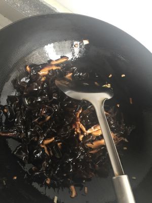 木耳 香菇泡发后切丝 因为家里没有黄花菜了 就剩了这个 不过 味道肯定会差些 我就是太懒了 不想下去买