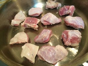牛肋切肉块,反正锅中少油煎到上色。