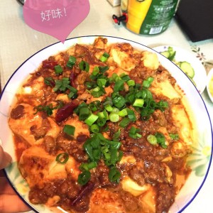 出锅后,锅里可以再烧少许油,油热了之后直接到在豆腐上,上桌前撒上葱花,简直米饭杀手啊!