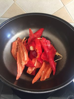 锅烧热后直接把辣椒放进去干煸