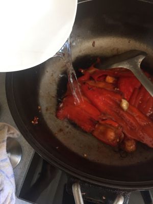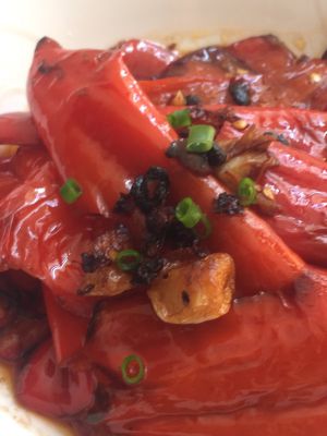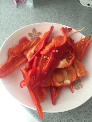 大红椒一定要选这种皮薄肉厚的,洗干净后用刀拍扁,然后手撕成块