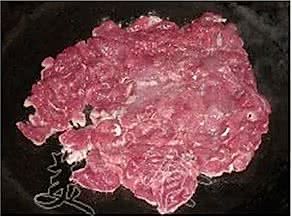 热油锅,放牛肉进锅,用中火煎1分钟;