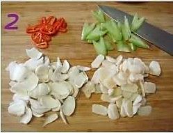 红甜椒切圈、西芹切小片、百合掰成片、马蹄去皮切厚片;