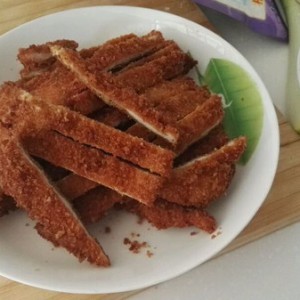 大约炸至一分多钟基本就好了,切成长条,美味炸鸡排就做好了