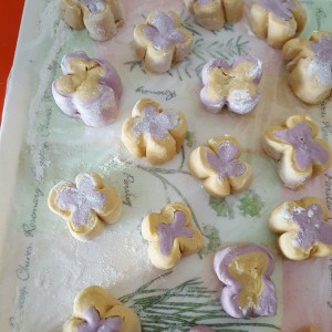 南瓜面紫薯面里外随意,都好看。用筷子夹成蝴蝶样