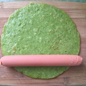 摊好的饼卷入火腿肠,你也可以卷自己喜爱的食物,都可以