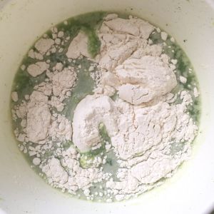 加入所有材料,面粉的量根据自己情况加,不要太稠也不要太稀,成稍浓稠的糊状