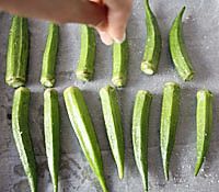撒上少许盐,再将秋葵翻面,将另一面也撒上盐。