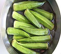用刷子蘸油,刷秋葵的表面,刷匀后放到油纸上。