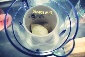 将香蕉、牛奶、白砂糖丢进料理机,然后就是搅拌吧!