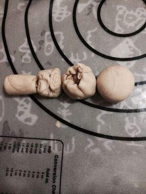 猪肉馅每份称重30克,这里是六个的量,实际只用了4个。放冷冻室冻起来,不然不好包。