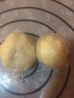 低粉,水,猪油,糖粉揉成油皮,盖上保鲜膜,低粉与猪油混合成油酥揉成团盖上保鲜膜。放置半个小时。这里油皮油酥揉得很多,因为要另作它用。