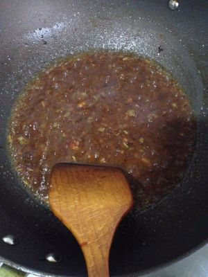 加入花椒面,盐,糖,生抽,料酒,继续翻炒