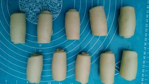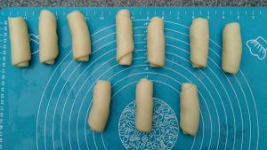 由上而下卷成圆筒状,其余面团也同此操作