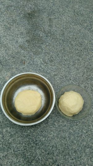 油皮和油酥材料分别揉成团,入冰箱冷藏半小时