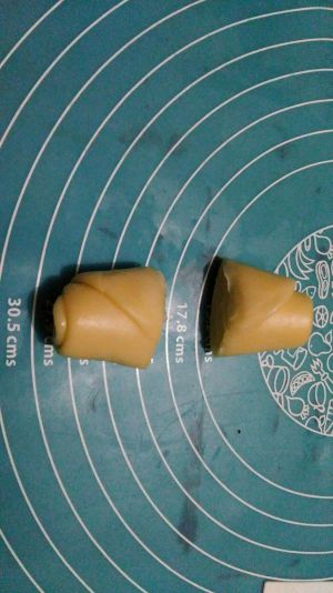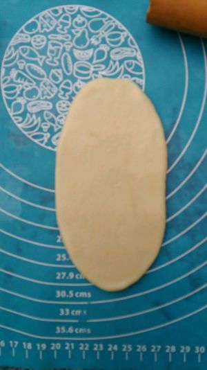 取一份包好的面团擀成椭圆形