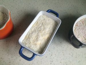 5. 筛入已混合的低粉和椰子粉。翻拌均匀至无干粉就停手。