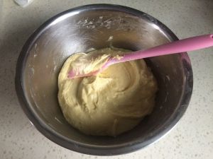 3. 每次加入蛋液后都要用电动打蛋器打至黄油和蛋液完全融合。