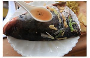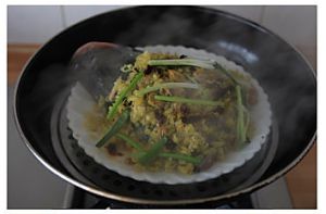 大火烧开锅中的水,放入鱼头盖上锅盖蒸制(保持大火蒸制,根据鱼头大小,一般半个鱼头10-12分钟,整个鱼头15分钟左右);