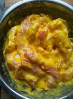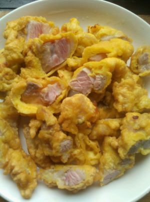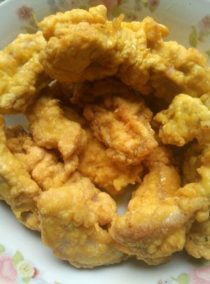 炸制好的酥肉切成块.可加入蔬菜煮熟就可以食用了。
