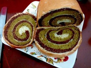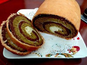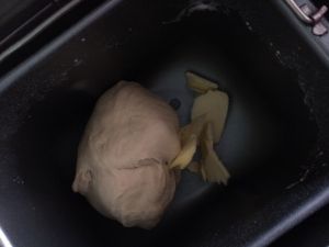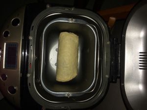 卷好后开口朝下放入面包机,选择发酵功能进行第二次发酵,约60分钟