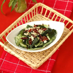 黄瓜表面抹少许盐,搓洗干净,再用凉白开冲洗后晾干。