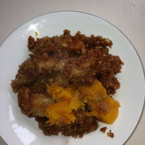 南瓜垫底,平铺在蒸锅里(最好是高压锅),15分钟后就可以开吃啦
