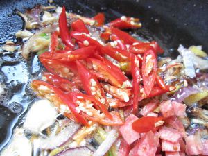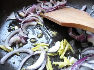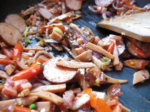 放入莴笋丝将所有配料拌好,小火炒出香味。
