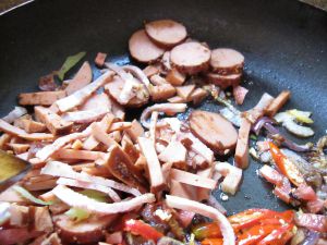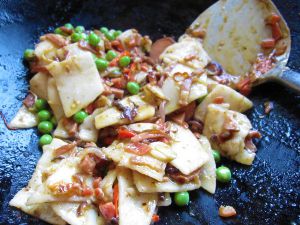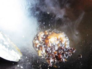 将9中炒过的大救驾倒入12中翻炒均匀沾上酱汁,速度要快。
