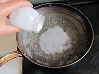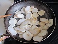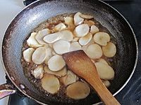 在锅中加入适量的油,放入杏鲍菇片煎一下;