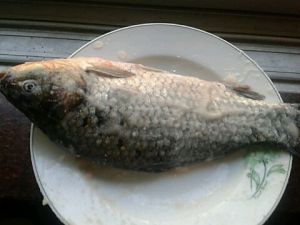 鲫鱼去肚,去腹中黑色内膜,不要去鳞,收拾干净。
