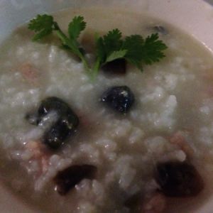 我这个做法与其他人不太一样,就是把肉炒一下快熟时放皮蛋放下去继续翻炒微微变色,放入煮粥的锅里再炖15分钟左右。