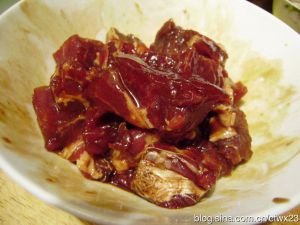 牛柳粒加入生抽老抽蚝油极少量的糖少量生淀拌匀入冰箱冷藏至少一晚上(最好要24小时,可以更入味)