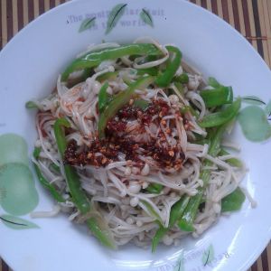 加入蒜末,适量盐和少量白糖搅拌均匀,最后淋上辣椒油即可