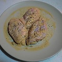 把解冻好的鸡中翅用刀划开两个口子,把腐乳糊在鸡翅上,并洒上黑椒粒腌二十分钟。