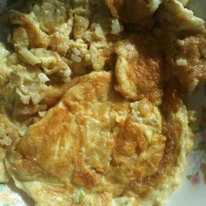 油烧热,把拌好的鸡蛋土豆倒进锅里,用铲快速摊开煎熟即可