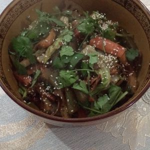 盛好 撒上白芝麻和香菜 一盆色香味俱全的麻辣香锅就做好了