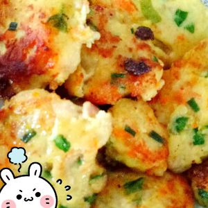 将压好的土豆泥和面粉,玉米淀粉,鸡蛋,胡萝卜,香葱,鸡汁,盐搅拌在一起