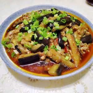 煮至茄子软烂,适当放盐,大火收汁,留少许汁水时,大火分两次倒入鱼香汁翻炒1,2分钟。关火。(第一次倒入一半,翻炒一分钟左右,剩下的再倒入翻炒一两分钟)