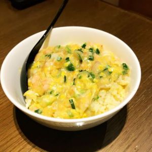 将做好的滑蛋虾仁倒在炒饭上即可享用美味。